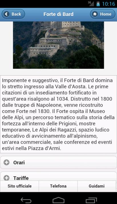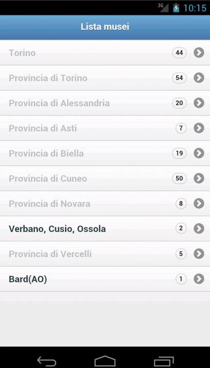 Mit der Bewerbung können Sie eine Liste der Musei im italienischen Gebiet (vorerst nur Piemont und Valle d'Aosta) anzeigen und die Zeiten und die Preise der Besuche kennen. Sie können das Museum auch direkt anrufen und seine Position auf der Karte anzeigen (die Route wird ab der Position des mobilen Geräts erstellt).